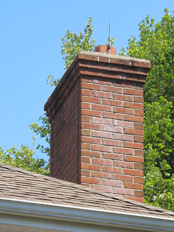 Lightning Protection equipment on chimneys is made of lead coated copper, or tinned copper, to prevent deterioration from smoke and furnace gases. Chimney air terminals must extend at least 10 inches above the highest part of the chimney.
