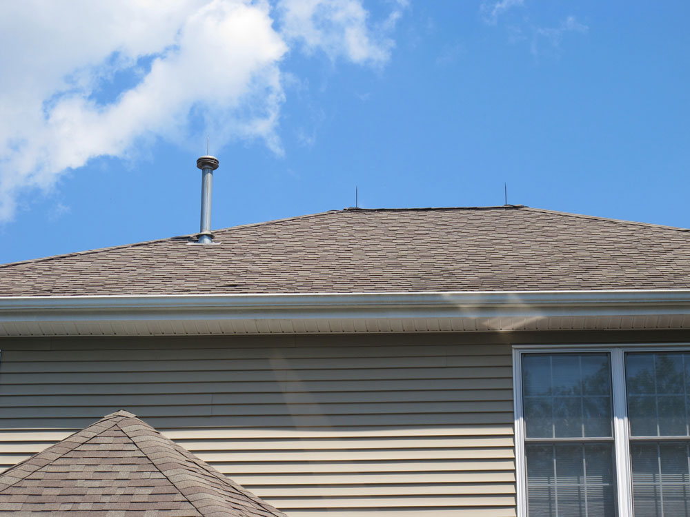 Longer air terminals with special concealed fittings are installed along the ridges inside of the building on new homes under construction.